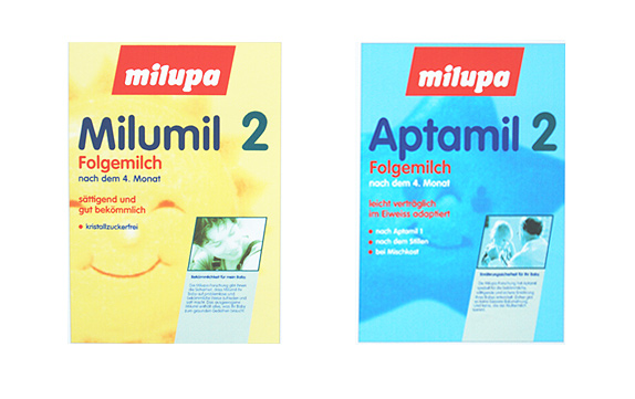 1 Milumil + Aptamil, Relaunch der bisherigen Verpackung, Designüberarbeitung, Typografie, Farbcodierung