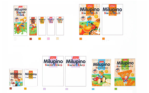 3 Milupino, Relaunch, Visuelle Konzeption, Design / Layout, Designstruktur, Bildideen für die gesamte Produktfamilie